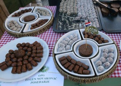 Na sajmu će se, među ostalim, naći domaći keksi i likeri Drage i Jolande Drmić, biljni pripravci s potpisom Jerkin koje treba potražiti u petak, smokvenjaci Eugena Novakovića, cvjetna sol Solane Nin, aromatična vina Julijana Lonića koja će biti ponuđena samo u subotu, likeri i rakije Branke Aralica, „Bokunovi“ voćni sokovi i džemovi, cetinski sir „Alkar“ i najpoznatija slavonska delicija – kulen. Proizvodi za njegu tijela zastupljeni su unutar ponude Kasiopeje i Sapunoteke.