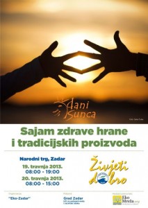 U povodu obilježavanja Dana planeta Zemlje 22. travnja, udruga „Eko-Zadar“ organizira 27. Sajam zdrave hrane i tradicijskih proizvoda „Dani sunca“. Sajam će se održati 19. i 20. travnja 2013. na Narodnom trgu u Zadru.