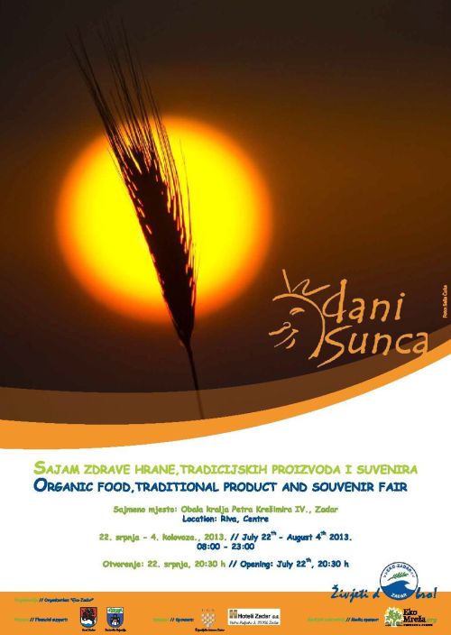 Udruga „Eko-Zadar“ u povodu otvorenja ljetnog izdanja sajma „Dani sunca“ priređuje druženje uz zalazak sunca. S početkom u 20.30 sati, prvog sajmenog dana, 22. srpnja 2013., na Rivi će nastupiti zadarske glazbenice naziva Dina e Mel.