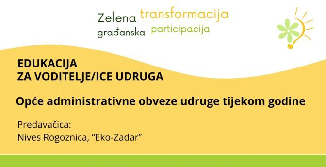 Zelena transformacija - građanska participacija 2025Edukacija za voditelje udruga u GKZD: Obveze udruge kroz godinu
