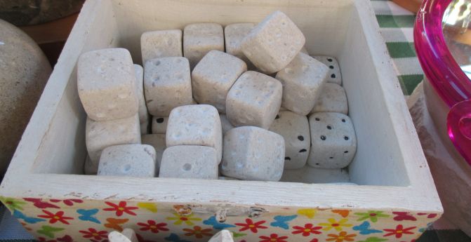 – Po kamen idemo na Brač i sve potom radimo ručno. Cilj nam je biti drugačiji, i naušnice su od bračkog kamena, kao i bićerini za rakiju – kaže Barbara Pletikosić iz tvrtke „Kamen dizajn“ iz Preka. Na njihovom štandu su i kockice za igru od bračkog kamena, no ljudi ih koriste za sasvim drugu namjenu: stave ih u zamrzivač i koriste kao kocke leda, jer se tako piće rashladi, a ne razvodni se.