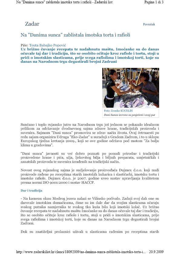 PressClippingNa "Danima sunca" zablistala imotska torta i rafioli