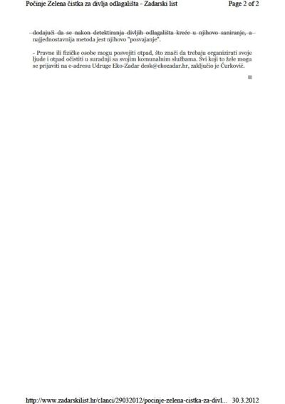 – Prvo treba otići na stranicu zelena-cistka.org, kliknuti na poveznicu za kartu divljih odlagališta cijelog svijeta. Najjednostavnija metoda je putem aplikacije za mobitel dostupne za iPhone i Android operativne sustave čija aplikacija se može naći putem poveznica na internet stranici Zelene čistke. Ukoliko nemate pametne telefone, to se može napraviti odlaskom na internet stranicu “Let’s do it! World cleanup 2012.” gdje se nalazi karta na kojoj se mogu dodavati nova divlja odlagališta, pojasnio je Ćurković, dodajući da se nakon detektiranja divljih odlagališta kreće u njihovo saniranje, a najjednostavnija metoda jest njihovo “posvajanje”.