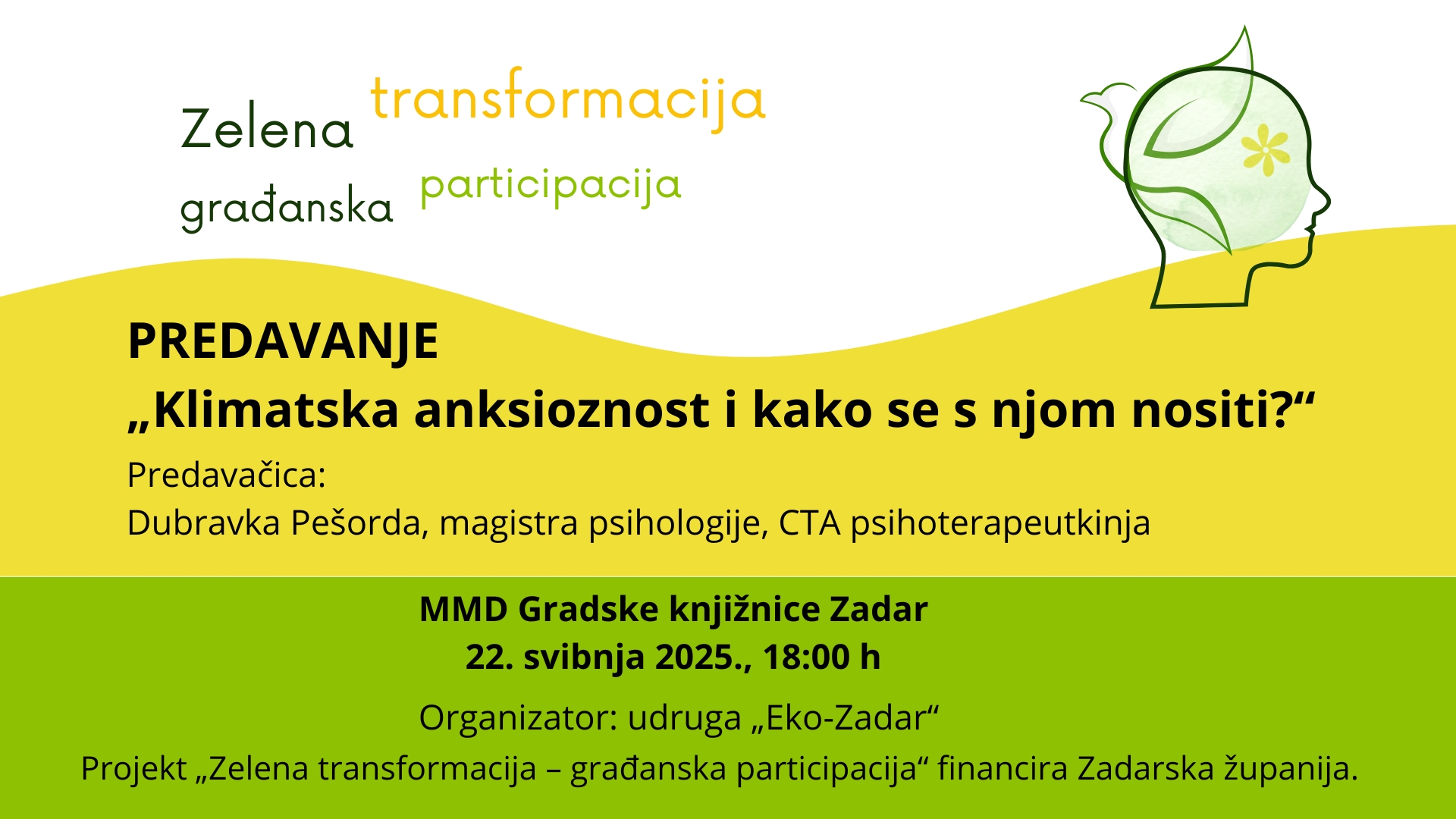 Predavanje „Klimatska anksioznost i kako se s njom nositi?“ prva je od ovogodišnjih aktivnosti u sklopu projekta „Zelena transformacija – građanska participacija“.