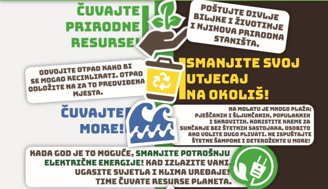 U sklopu projekta „OM- Održivi Molat” osmišljen je letak namijenjen posjetiteljima otoka Molata  kojim se  educiraju o ekološki poželjnom ponašanju u svrhu zašite okoliša i prirode.