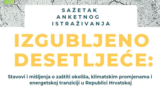 Društvo za oblikovanje održivog razvoja (DOOR) je u suradnji s Institutom za društvena istraživanja u Zagrebu, udrugom Terra Hub, „Eko-Zadar“ i ostalim partnerima na projektu „METAR – do bolje klime“ objavilo sažetak najznačajnijih rezultata najopsežnijeg sustavnog istraživanja percepcije javnosti o klimatskim promjenama i okolišu u Hrvatskoj pod nazivom „Izgubljeno desetljeće: Stavovi i mišljenja o zaštiti okoliša, klimatskim promjenama i energetskoj tranziciji u Republici Hrvatskoj“.