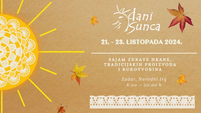 Sajam zdrave hrane, tradicijskih proizvoda i rukotvorina “Dani sunca” održat će se na Narodnom trgu u Zadru od 21. do 23. listopada 2024.