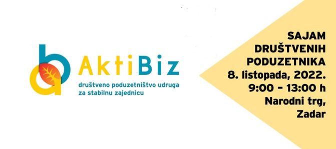 Na Narodnom trgu u Zadru u subotu 8. listopada od 9 do 13 sati održat će se Sajam društvenih poduzetnika. Sajam se održava u sklopu projekta „AktiBiz – društveno poduzetništvo udruga za stabilnu zajednicu“.