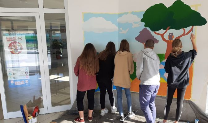 Volonterska akcija je, uslijed epidemioloških okolnosti, i u Ninu ostala u okvirima školskih suradnika/ca i učenika/ca, ali se unatoč tomu napravilo i više od planiranog. Postavljen je dio odabranih fotografija na foto natječaju „Prirodna baština kraljevskog grada“ koji se održao od 20. lipnja do 31. srpnja 2020. godine, oslikan je jedan unutarnji zid i započelo je oslikavanje vanjskog zida škole. Učenike/ce zainteresirane za kreativno izražavanje vodio je nastavnik likovnog Dino Surać. Ovom prilikom se zahvaljujemo Dinu i ravnateljici Kati Knežević koja nam je svojom otvorenošću za suradnjom i prilagodljivošću olakšala proces prilagodbe projektnih aktivnosti epidemiološkim mjerama. Riječ je o aktivnostima održanim u sklopu projekta „AMOR – Aktivni Mladi za Održivi Razvoj“.